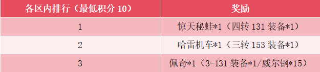 【活动奖励】:(全区排行第一额外奖励战翅翼龙*1或四转151装备*1二选一(最低积分100))
