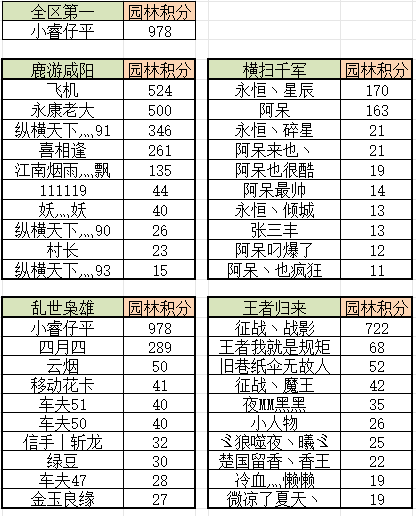经过激烈角逐,《秦始皇OL》皇家园林活动已圆满落幕。首先,我们对所有积极参与本次活动的玩家表示衷心的感谢,并对在园林中取得优异成绩的玩家表示热烈的祝贺: