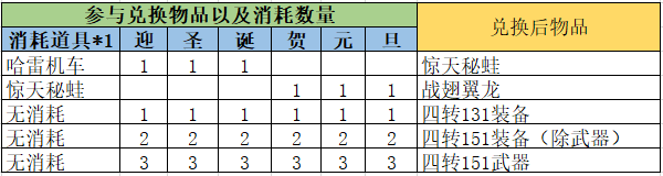 【活动兑换物品一览】:
