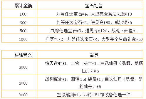 1.此活动为期间累计充值活动,不限充值类型,充值后联系灵官发放道具奖励,(累计金额)上限后将会重新计算充值获取,单账号最多获取两轮。